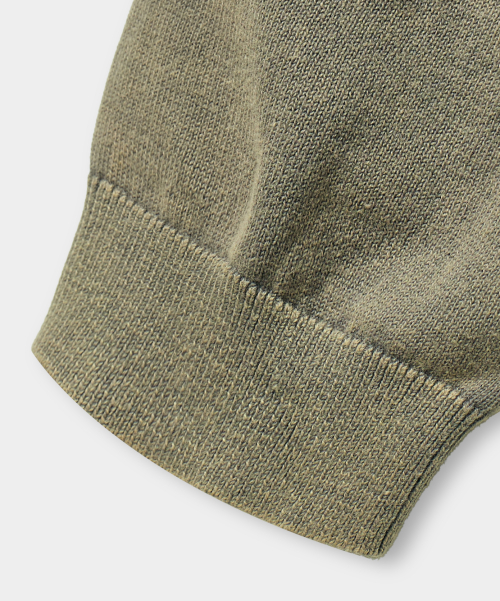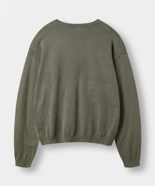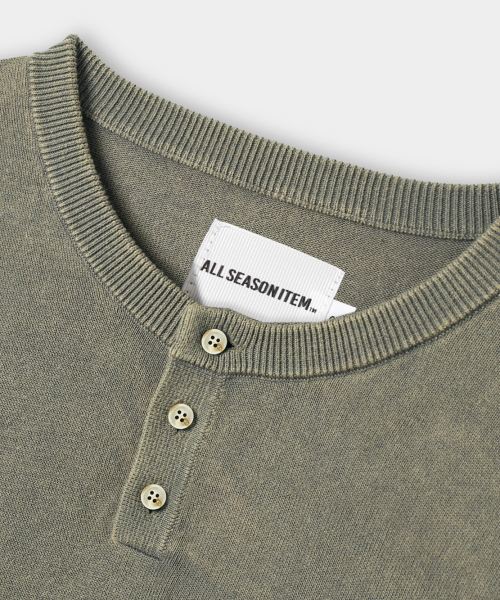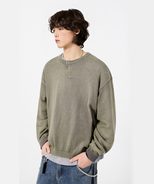 데일리 워셔블 피그먼트 헨리넥 라운드 니트_카키