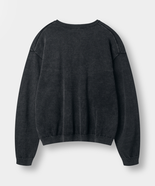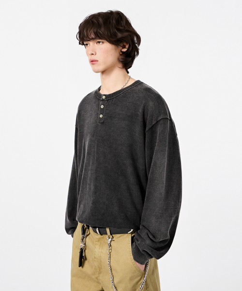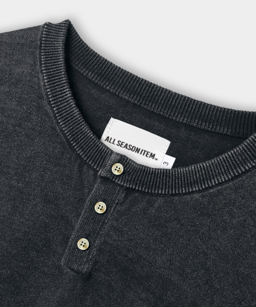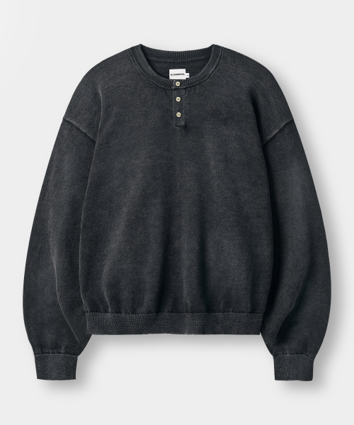 데일리 워셔블 피그먼트 헨리넥 라운드 니트_차콜