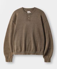 데일리 워셔블 피그먼트 헨리넥 라운드 니트_브라운