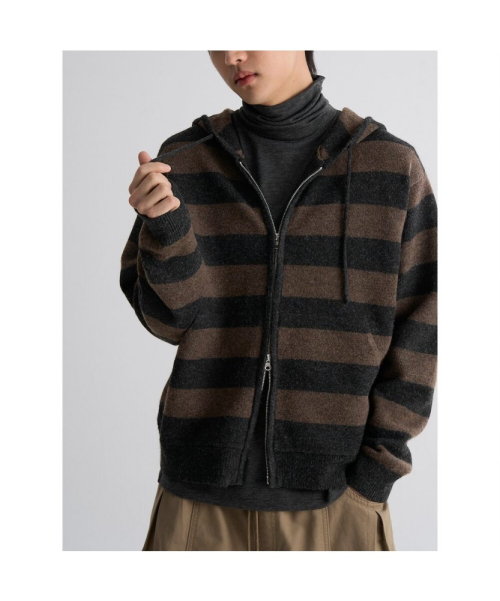부드러운 촉감의 울블렌드 원사로 제작한 스트라이프 후드 가디건입니다. 은은한 컬러 배색으로 활용도 높은 아이템입니다.