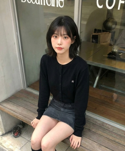 데일리 스타 라운드 가디건 블랙