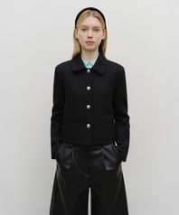 W COLLAR TWEED JACKET black