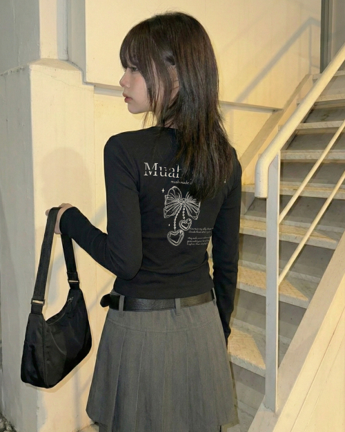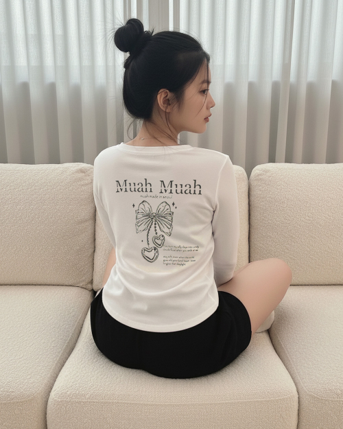 하트 스트링 리본 크롭 티셔츠 [2color]