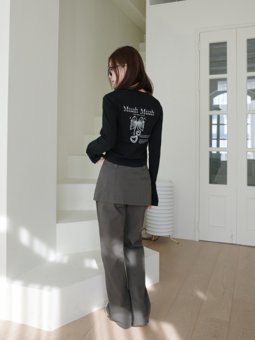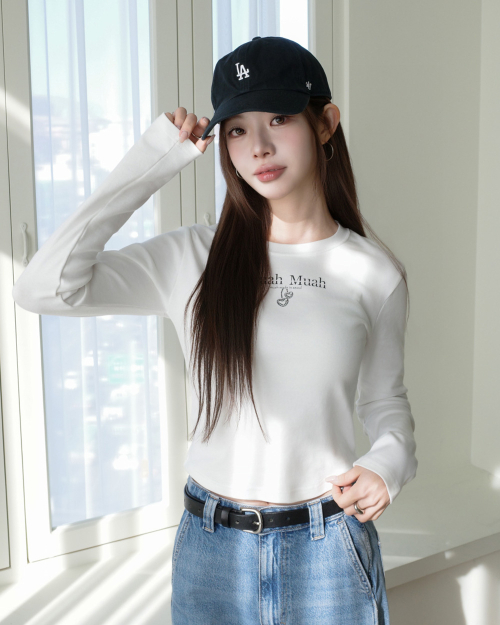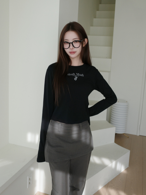헨리넥 슬릿 크롭 긴팔티셔츠 [2color]