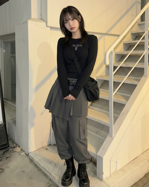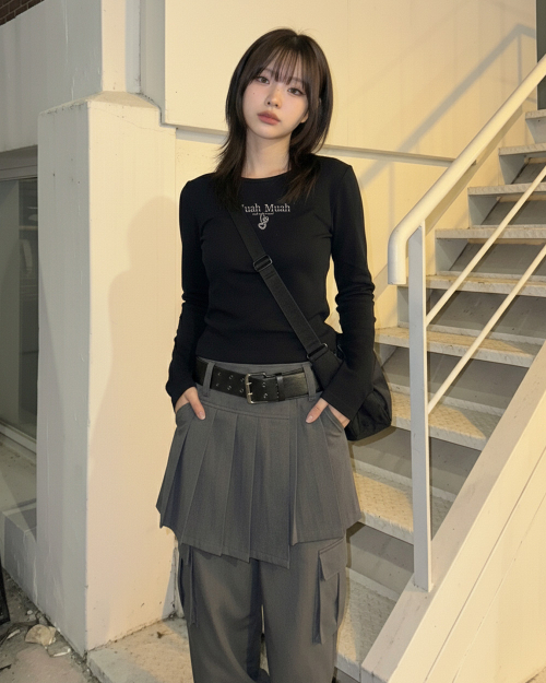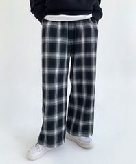 무아 체크 와이드밴딩 팬츠 [블랙]