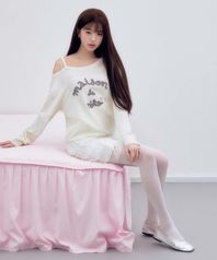 MAISON DE ROLA EMBROIDERY OFF SHOULDER KNIT WHITE
