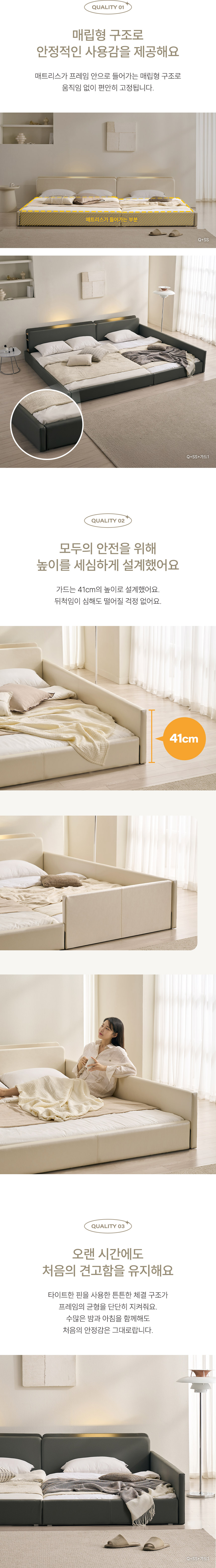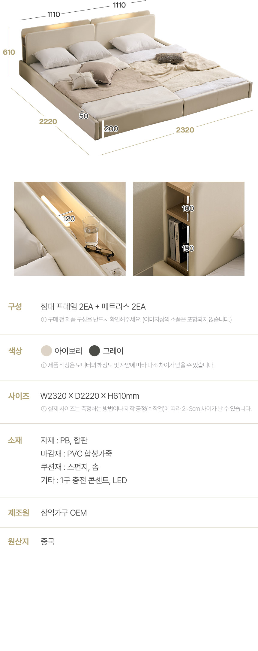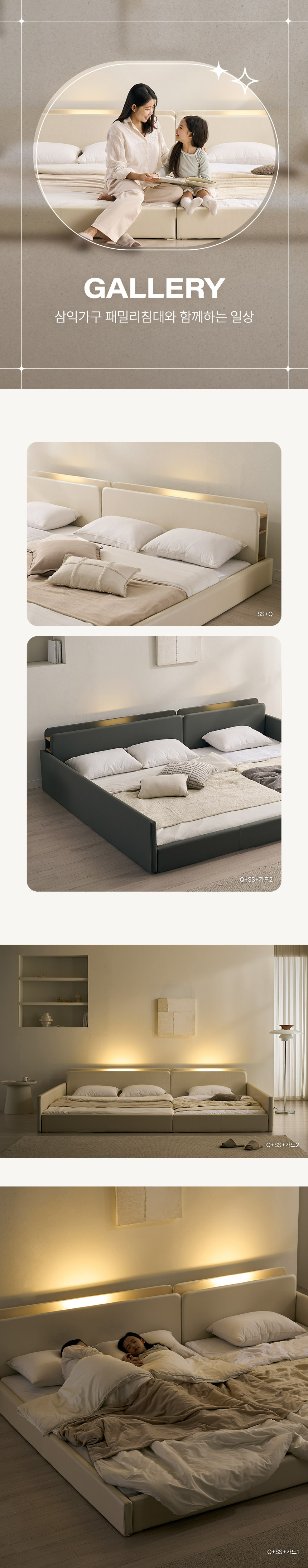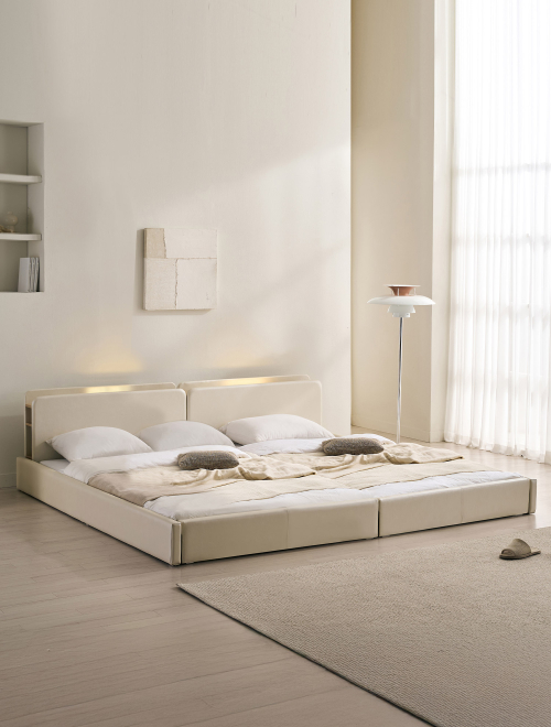 해온 LED 오픈 저상형 가죽 패밀리 침대 SS+SS(양모라텍스매트)