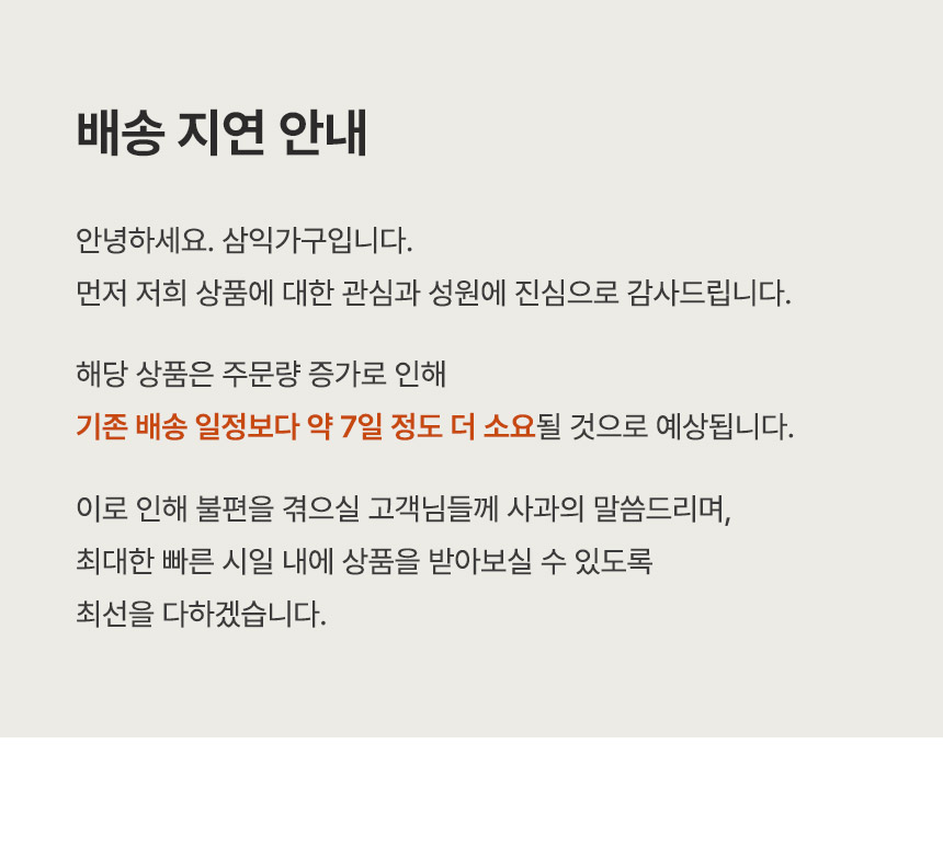 삼익가구(SAMICK)는 라이프스타일에 따른 공간의 가치 향상을 목표로 우수한 품질과 합리적인 가격, 차별화된 배송 시스템으로 고객 가치를 극대화하는 가구 유통 기업입니다.