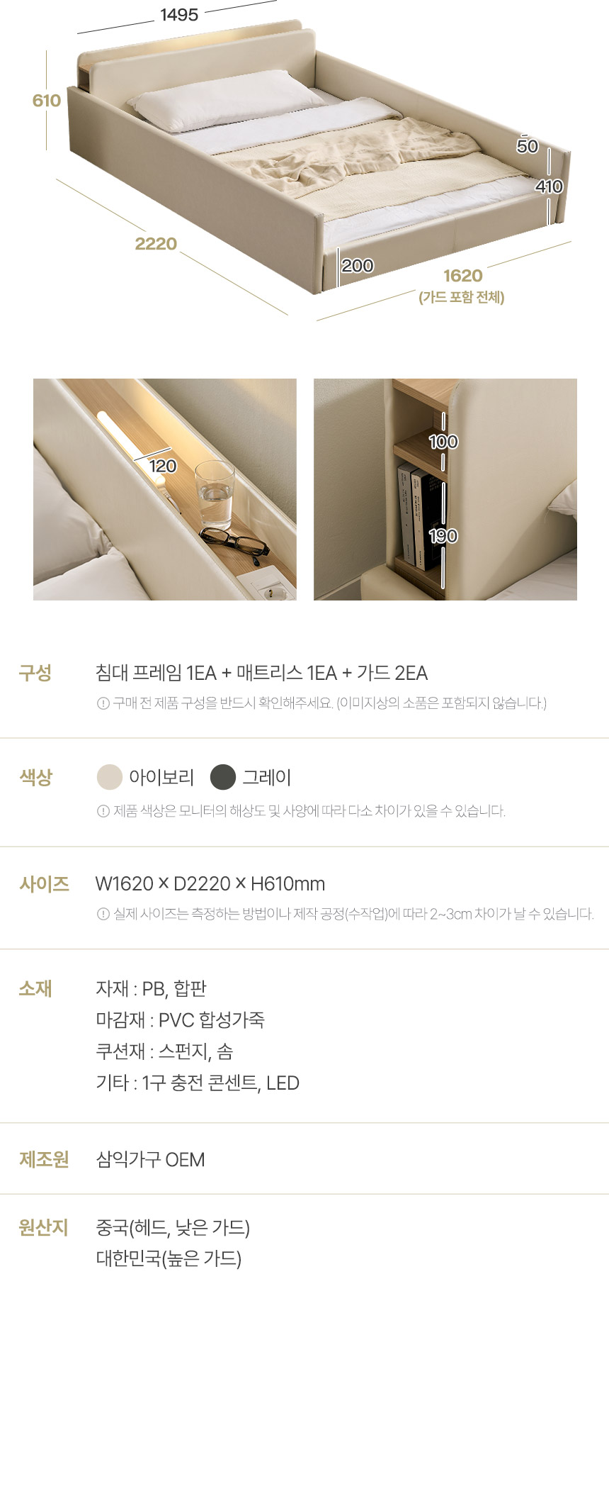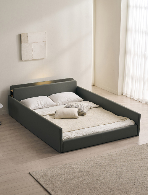 해온 LED 가드 저상형 가죽 침대(본넬스프링 매트리스-퀸)