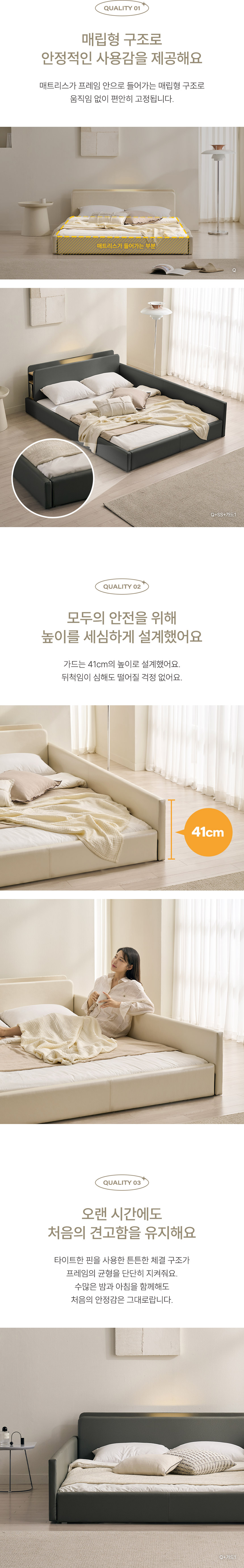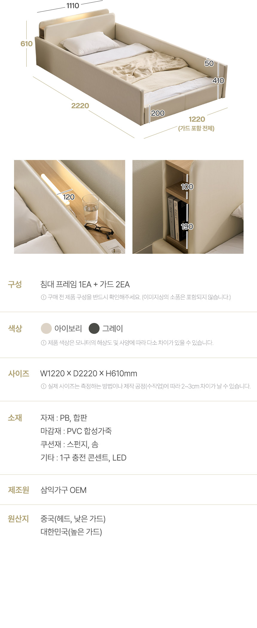 해온 LED 가드 저상형 가죽 침대(매트제외-슈퍼싱글)