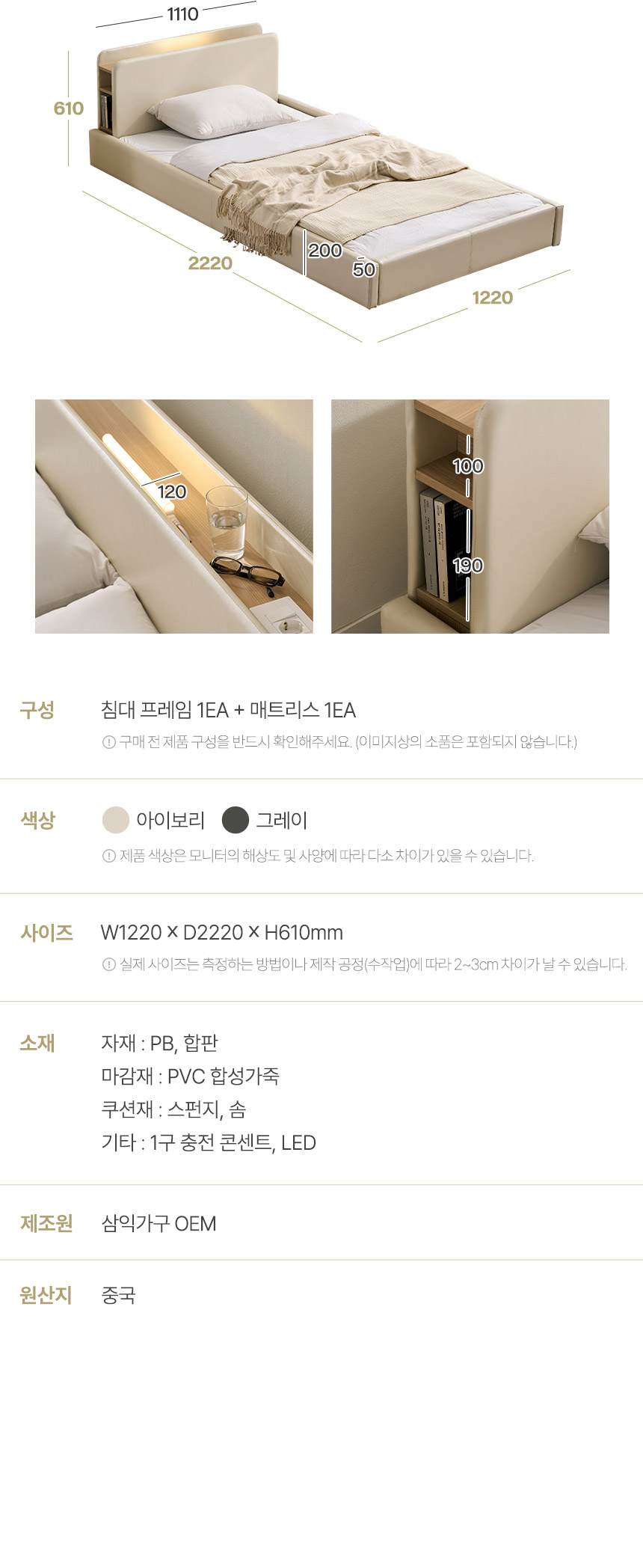 히노 호텔식 편백나무 LED조명 빅수납 침대(매트제외-슈퍼싱글)