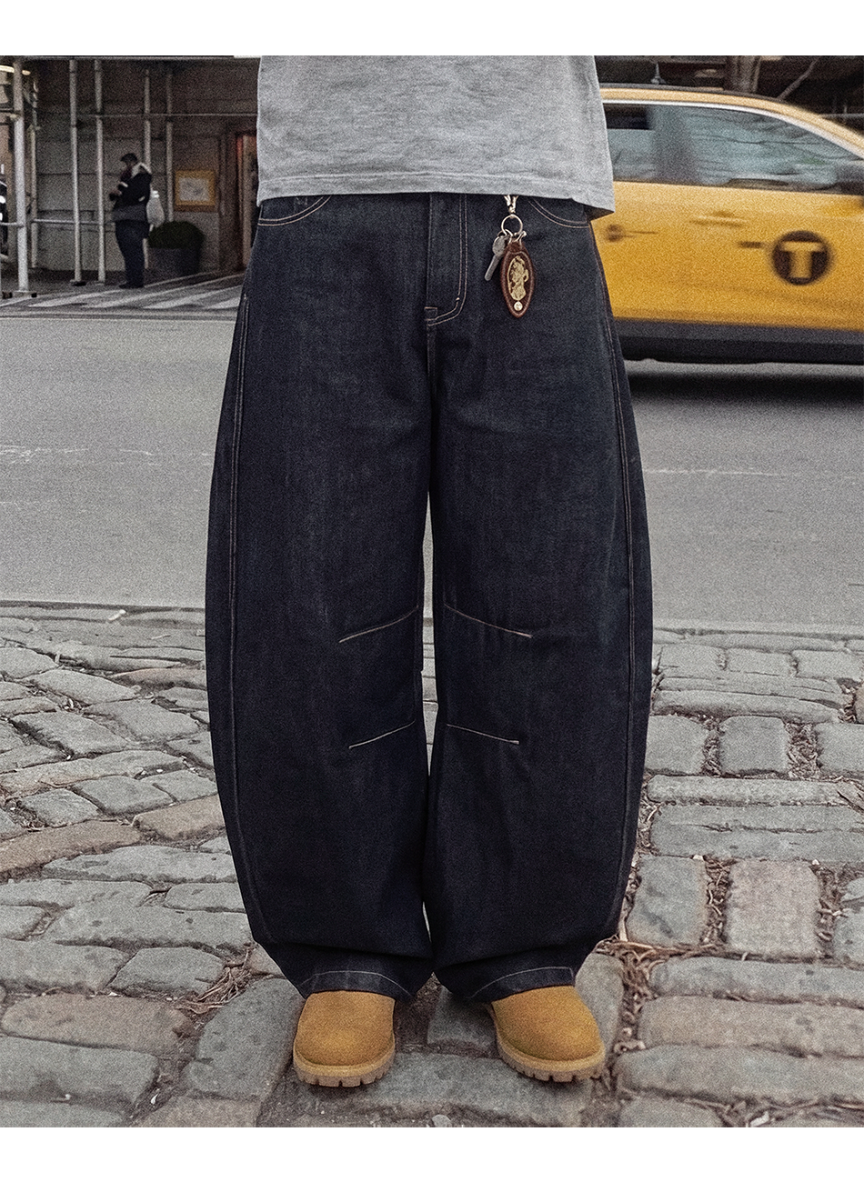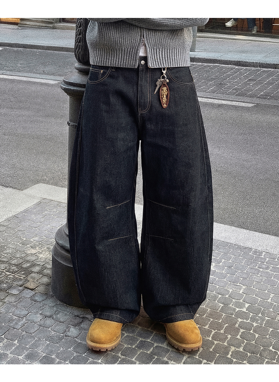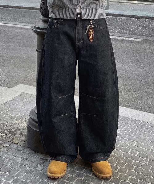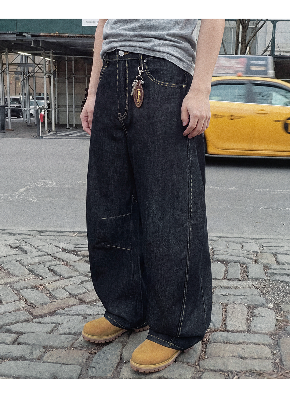 TX304 커브드 배기 벌룬 데님 (블랙)