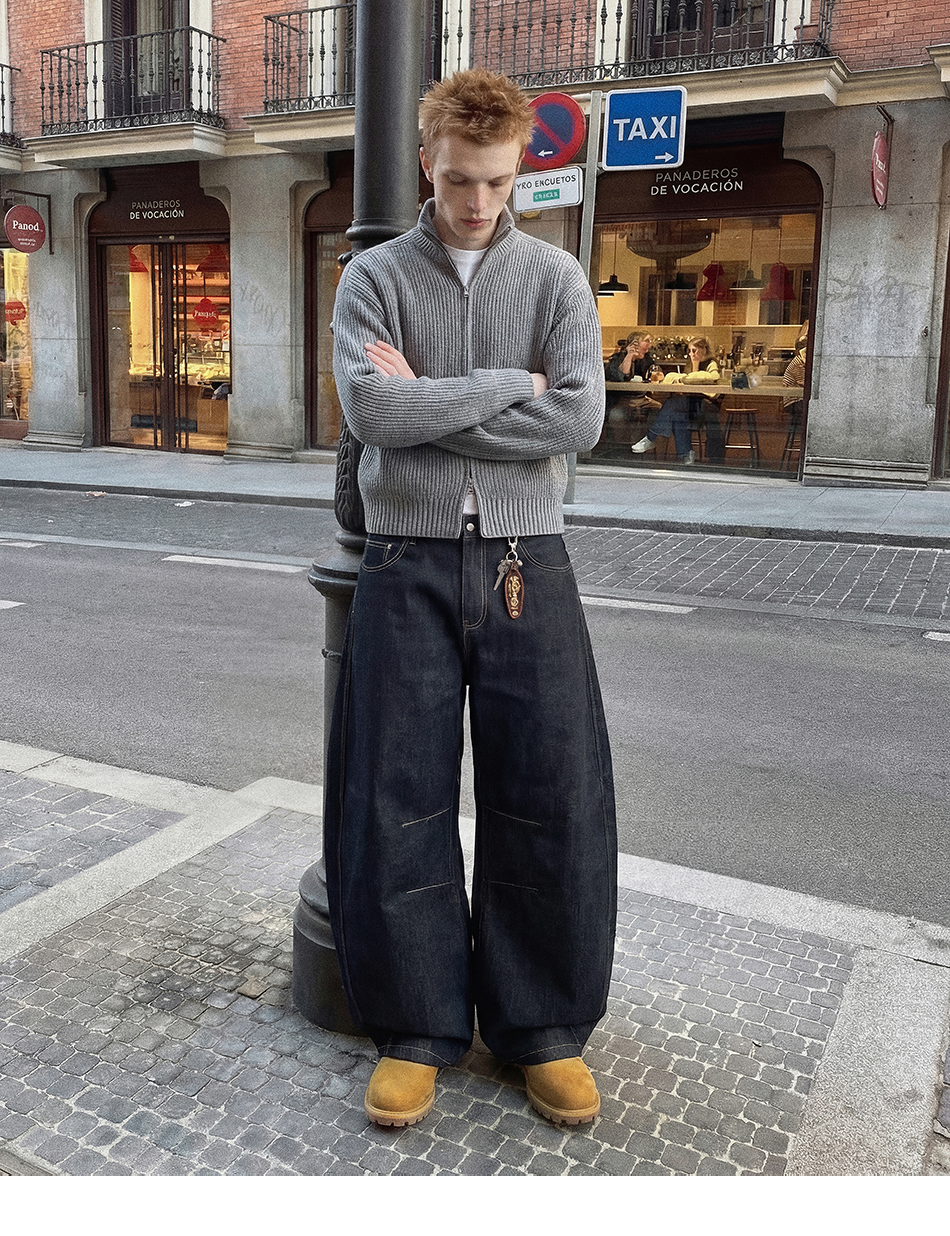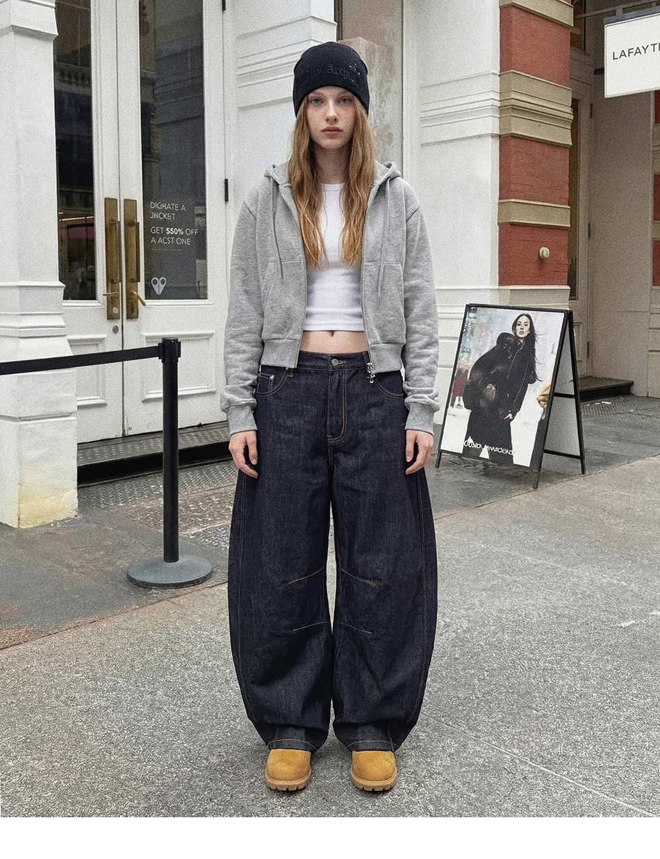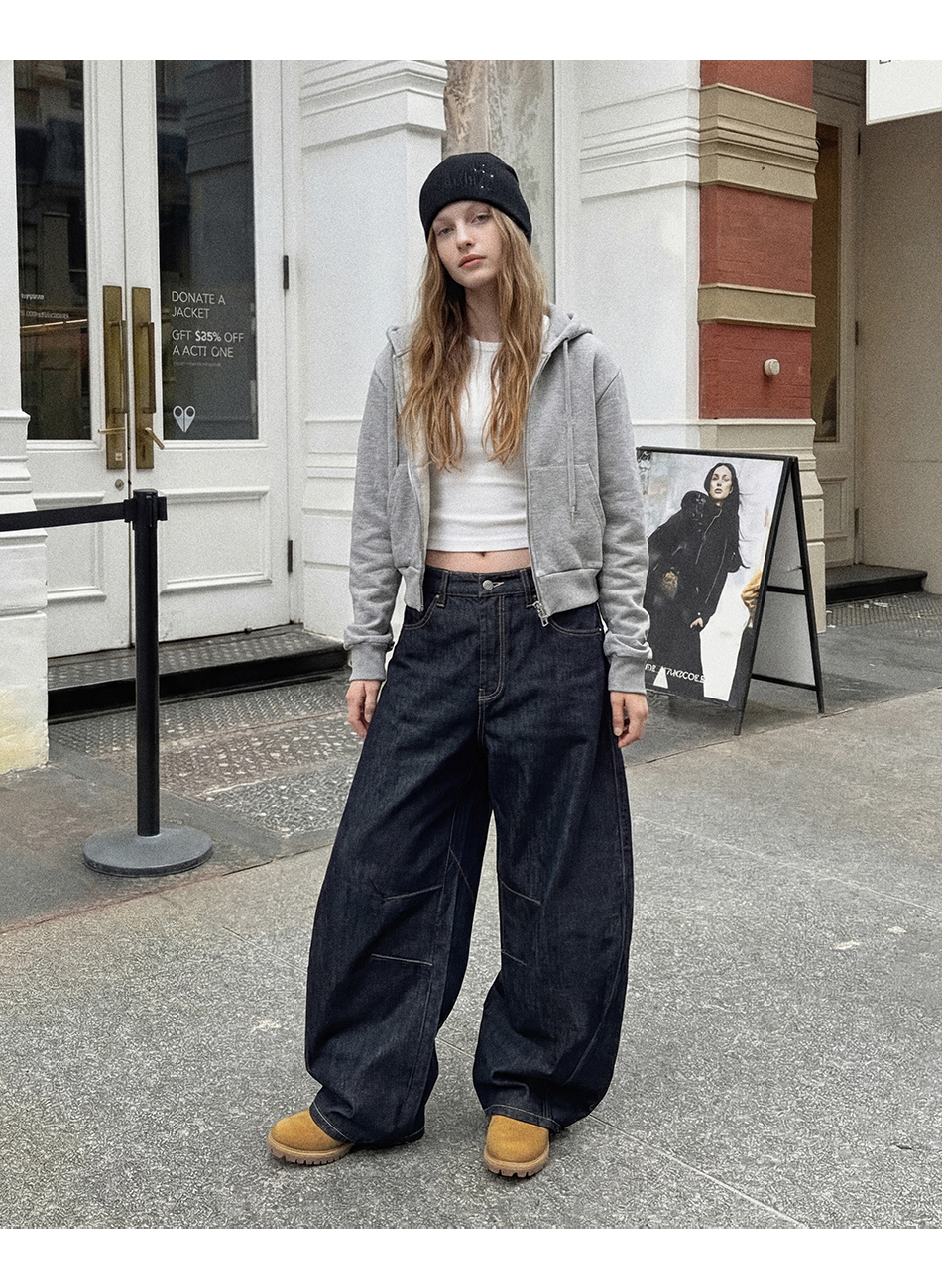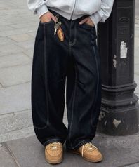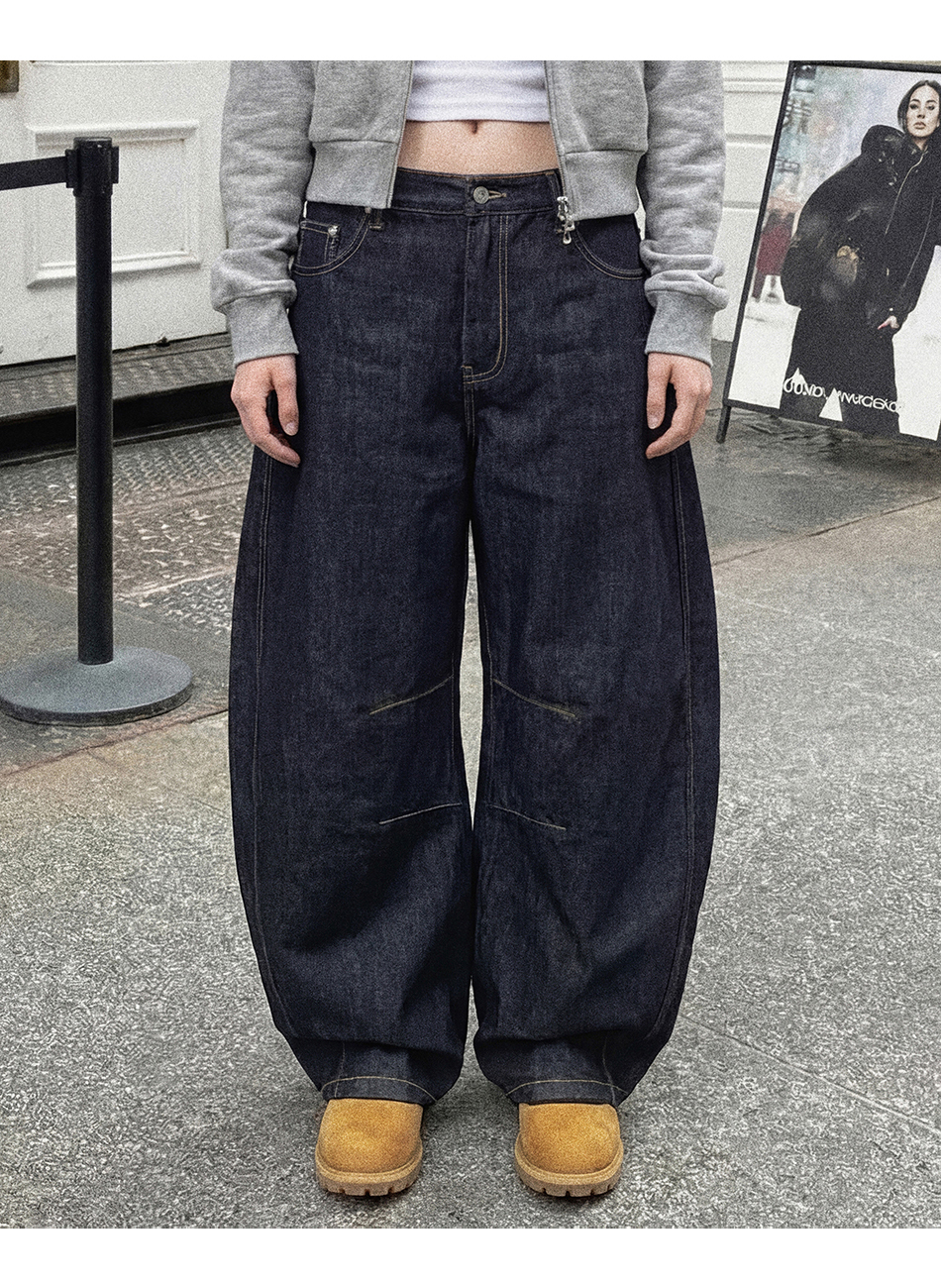 TX304 커브드 배기 벌룬 데님 (블랙)
