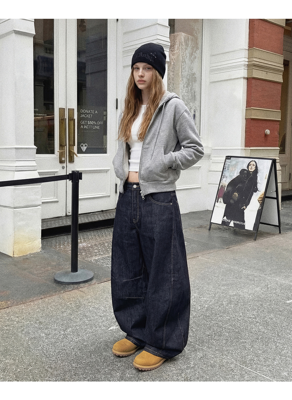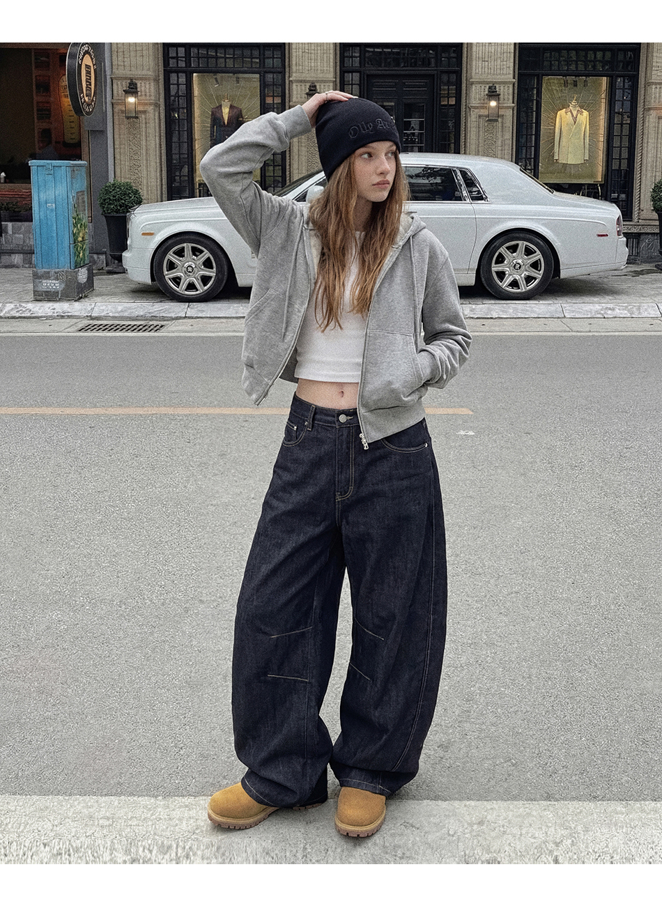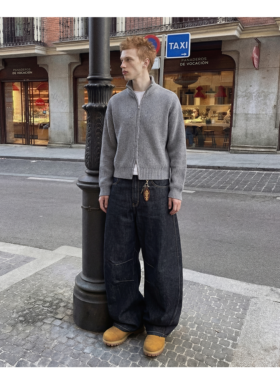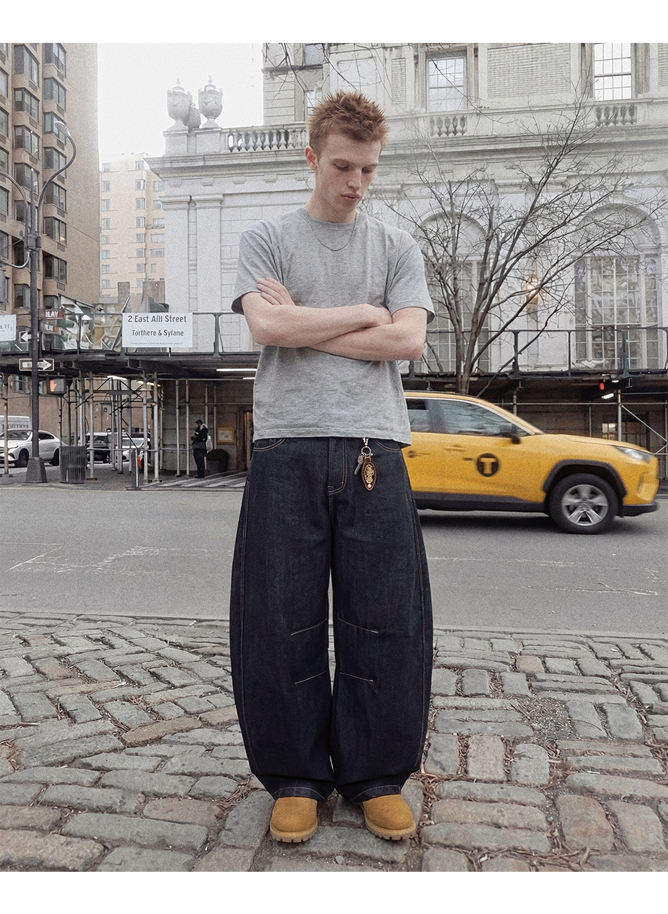 TX304 커브드 배기 벌룬 데님 (블랙)
