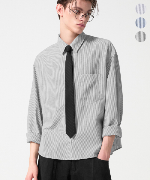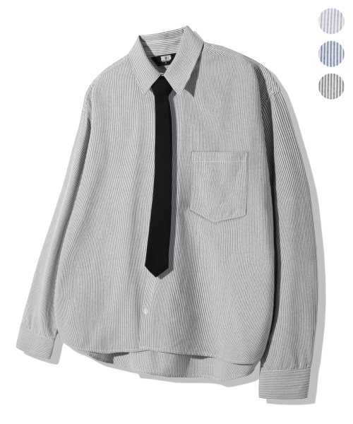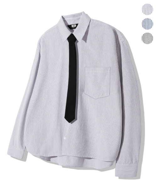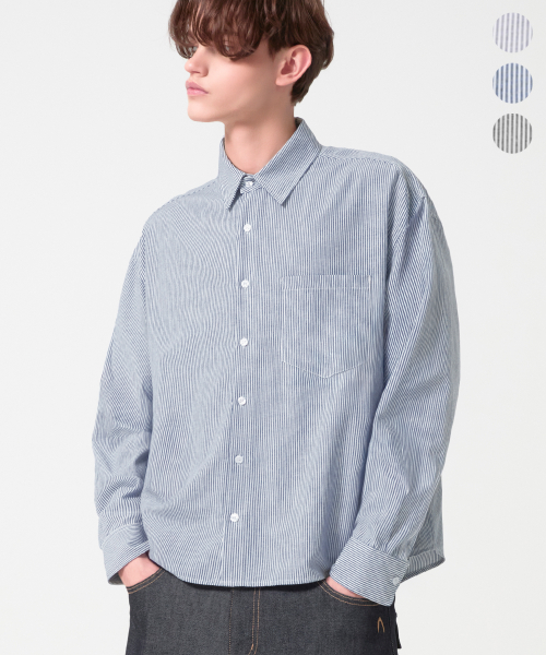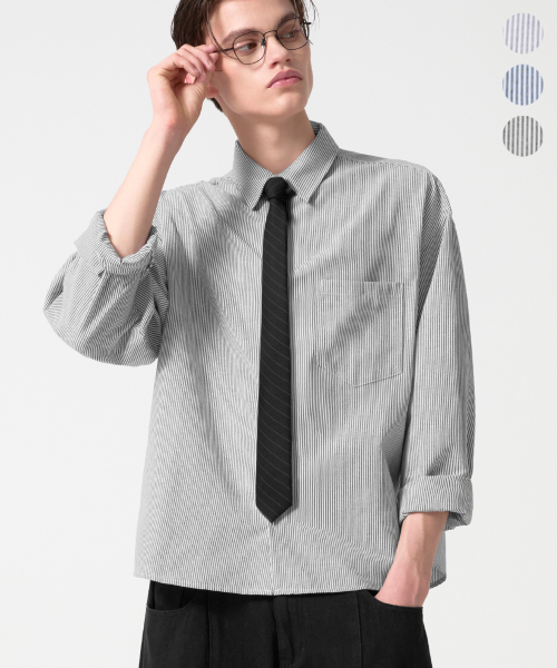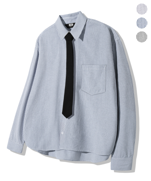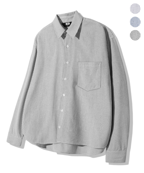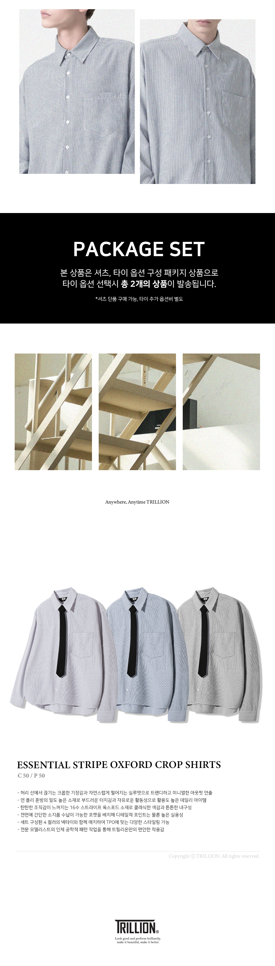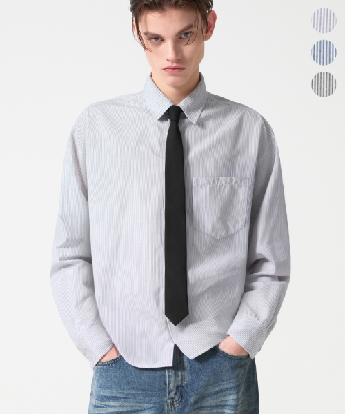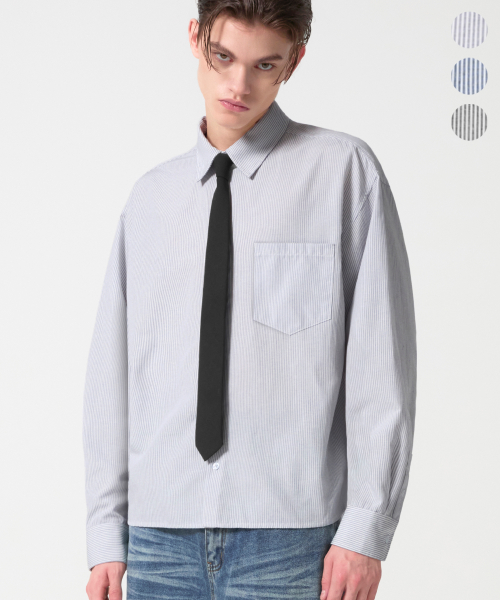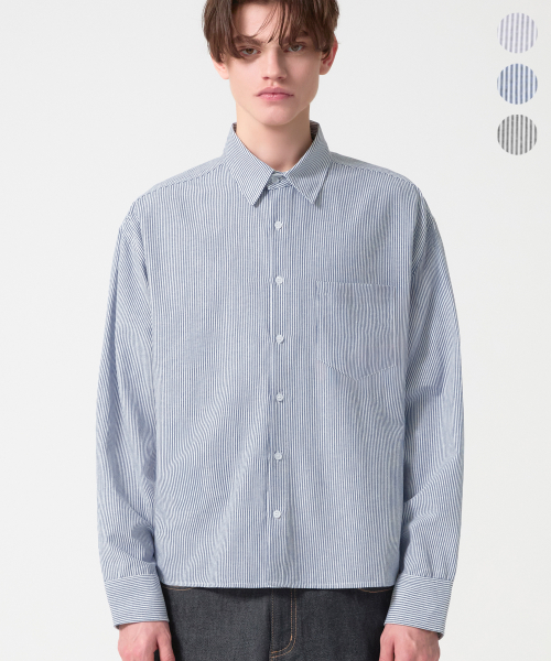 에센셜 옥스포드 크롭 스트라이프 셔츠_3color