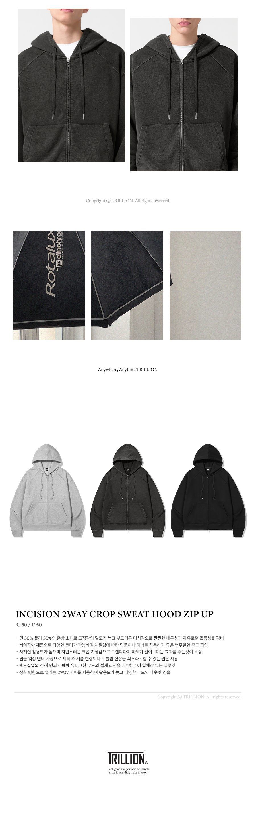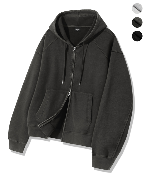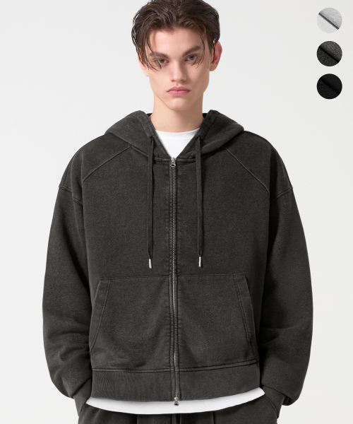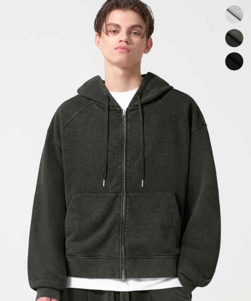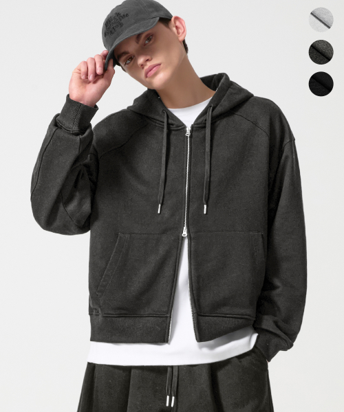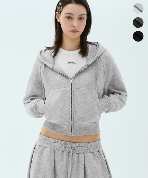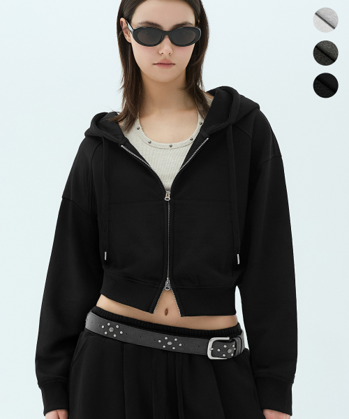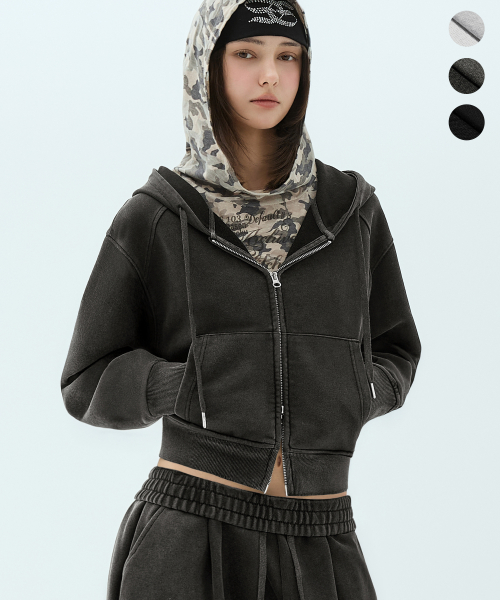 [기획] (여성추가) 절개 세미 크롭 피그먼트 후드 집업_3color