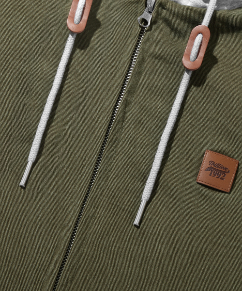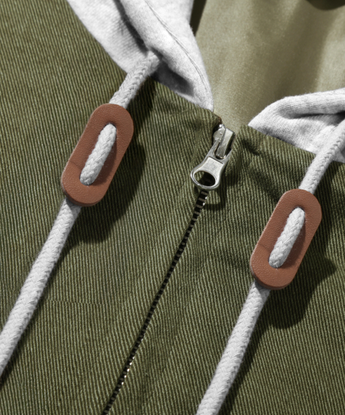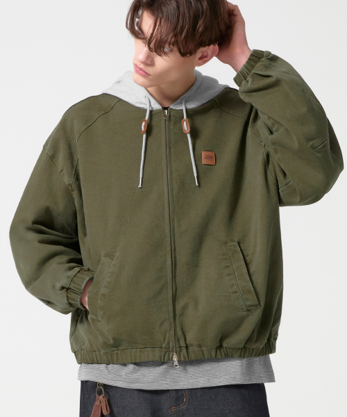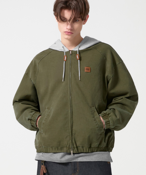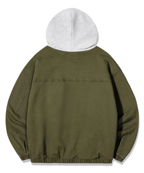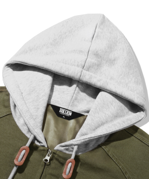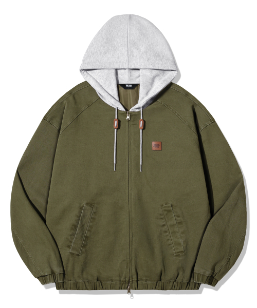 2WAY 빈티지 워싱 코튼 후드 집업_카키