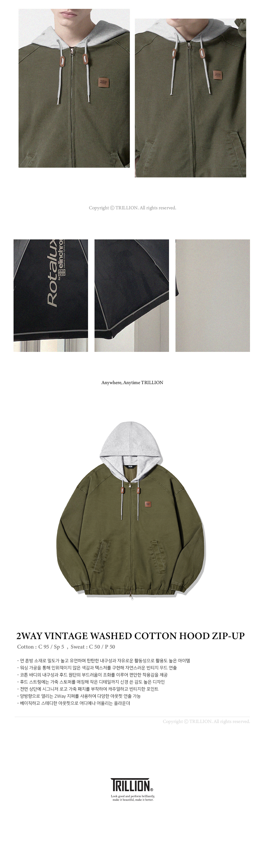트릴리온(TRILLION)은 클래식, 빈티지, 아웃도어, 어반 등의 스타일을 베이스로 트릴리온만의 컨템포러리 감성을 더해 높은 퀄리티의 제품을 합리적인 가격에 제시합니다. 단 하나의 제품에도 만족감을 느낄 수 있는 가치를 추구합니다.