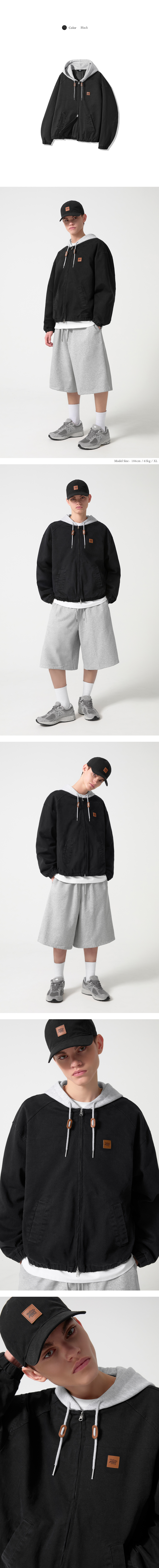 2WAY 빈티지 워싱 코튼 후드 집업_블랙