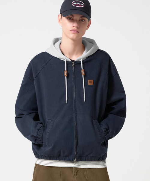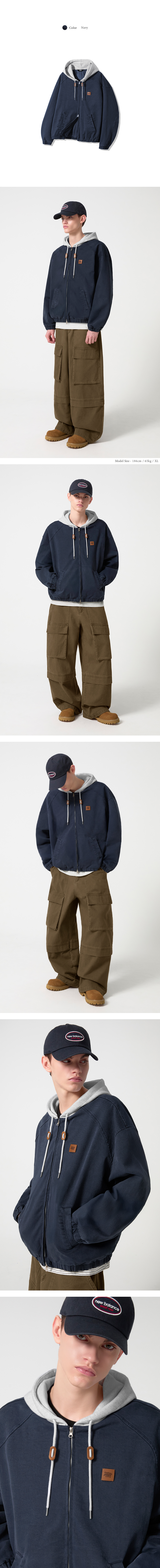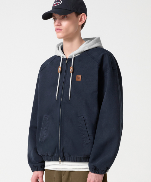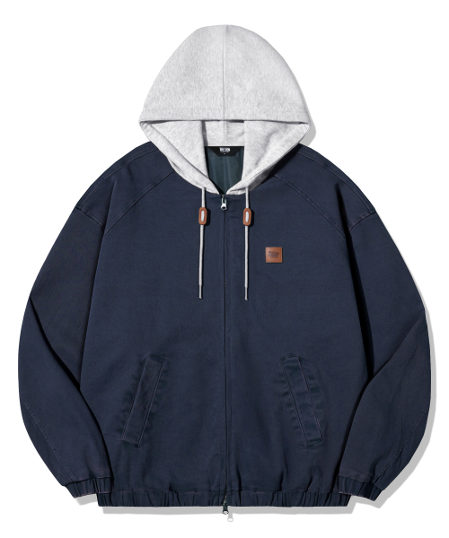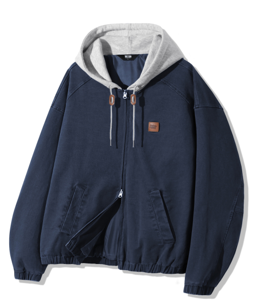 2WAY 빈티지 워싱 코튼 후드 집업_네이비