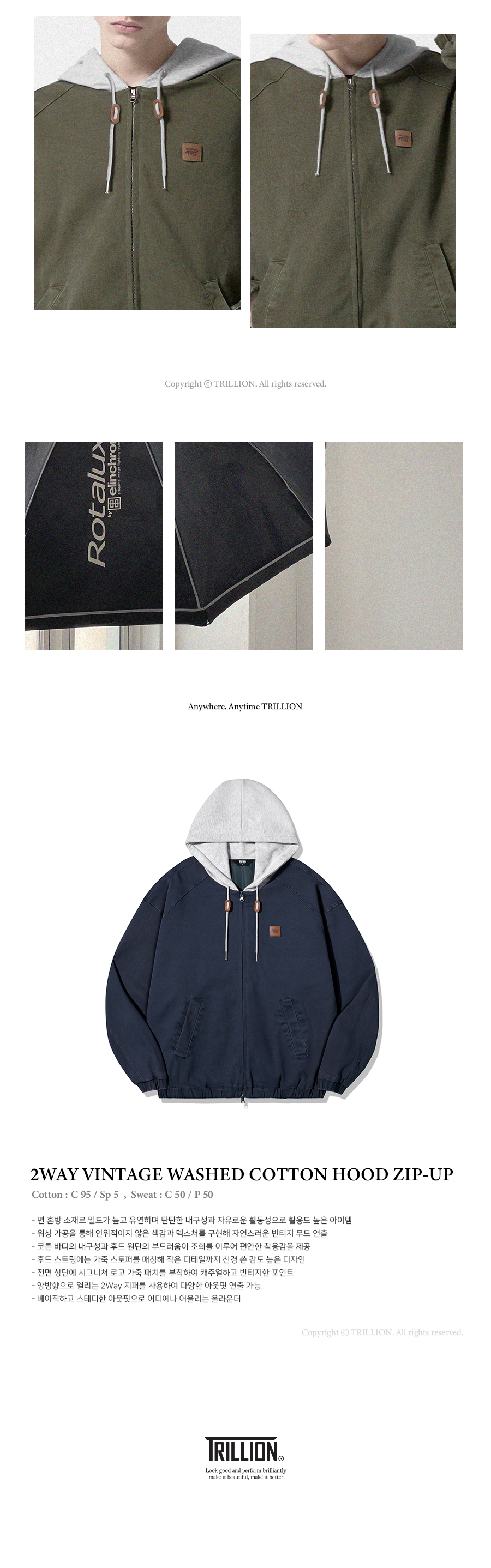트릴리온(TRILLION)은 클래식, 빈티지, 아웃도어, 어반 등의 스타일을 베이스로 트릴리온만의 컨템포러리 감성을 더해 높은 퀄리티의 제품을 합리적인 가격에 제시합니다. 단 하나의 제품에도 만족감을 느낄 수 있는 가치를 추구합니다.