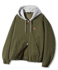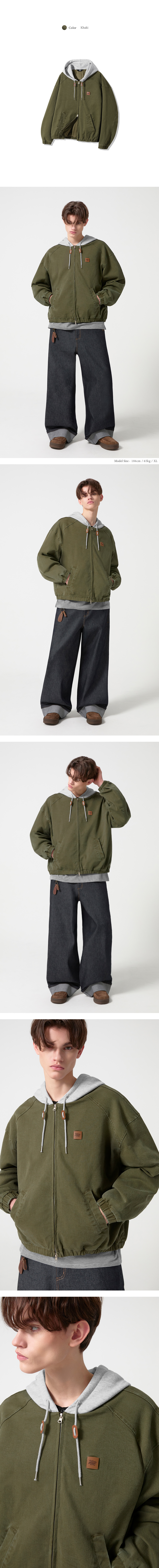 2WAY 빈티지 워싱 코튼 후드 집업_카키