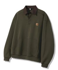 레더 패치 데님 카라 럭비 맨투맨_카키
