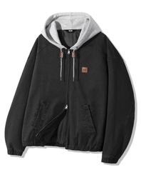 2WAY 빈티지 워싱 코튼 후드 집업_블랙