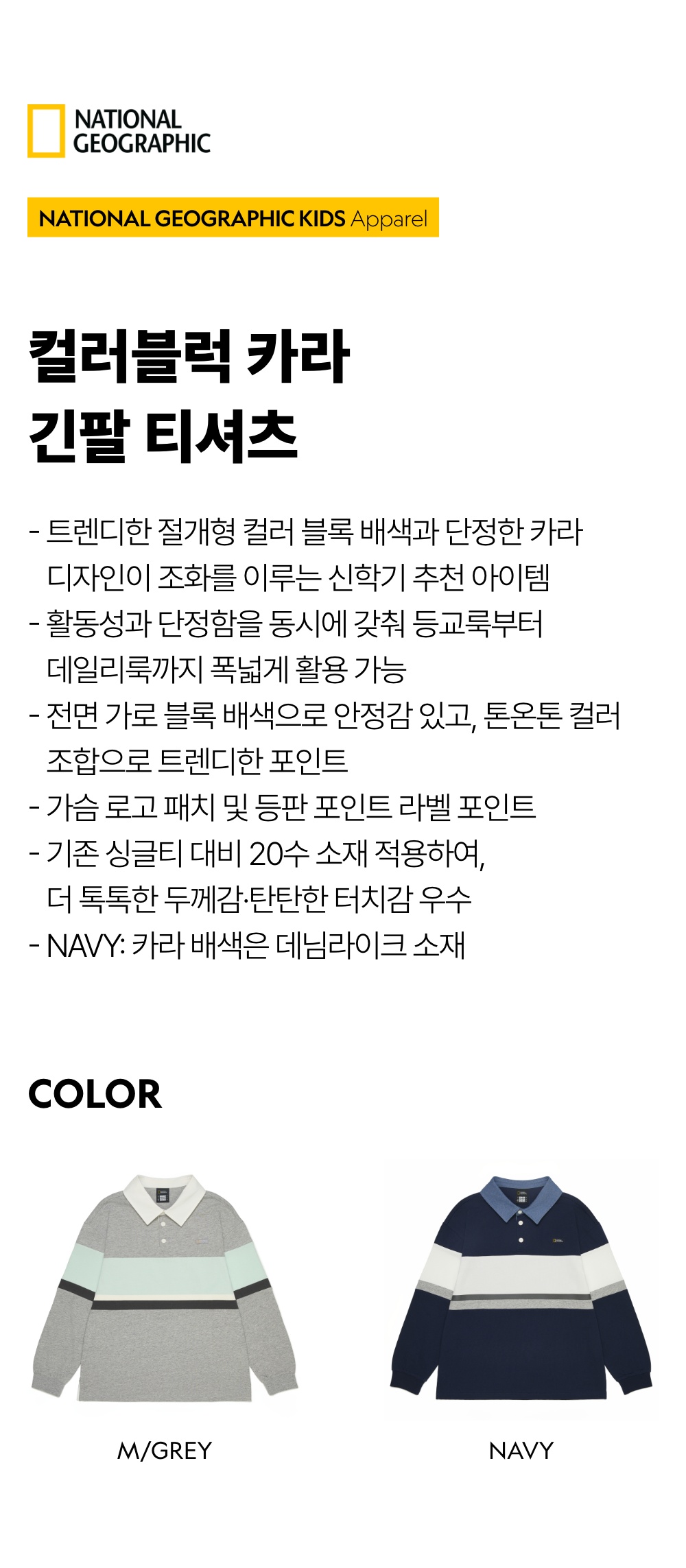 K261UTS930 컬러 블럭 카라 L/TEE NAVY