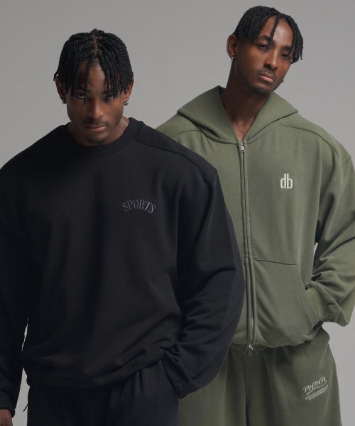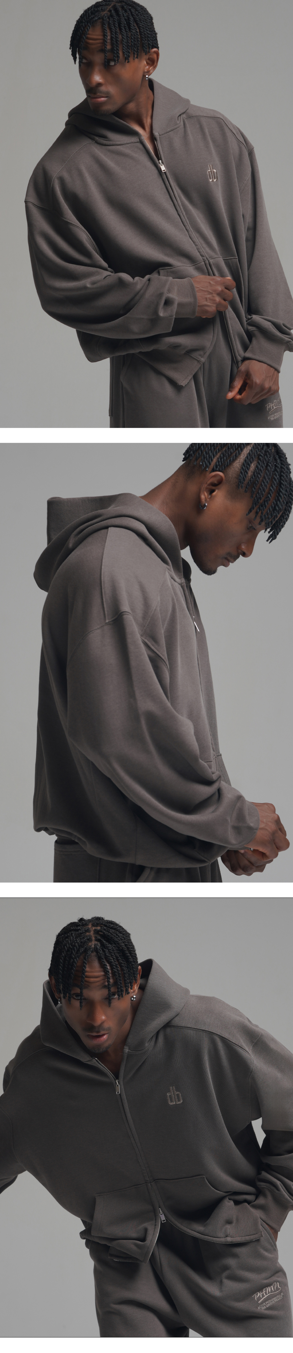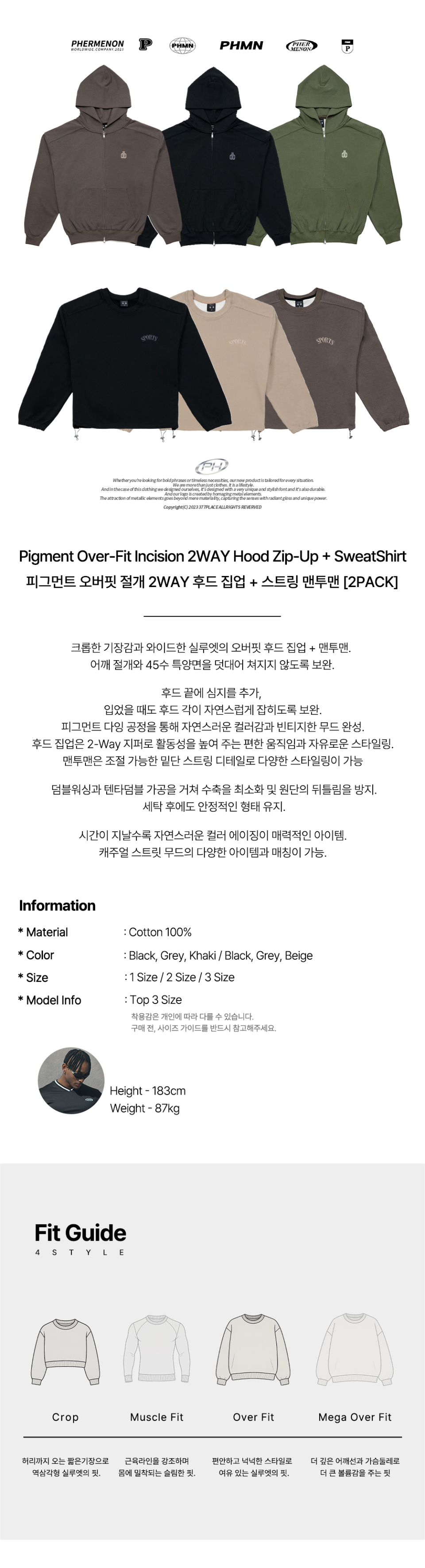 [2PACK] 피그먼트 오버핏 절개 2WAY 후드 집업 + 피그먼트 오버핏 절개 스트링 맨투맨 (3COLOR)