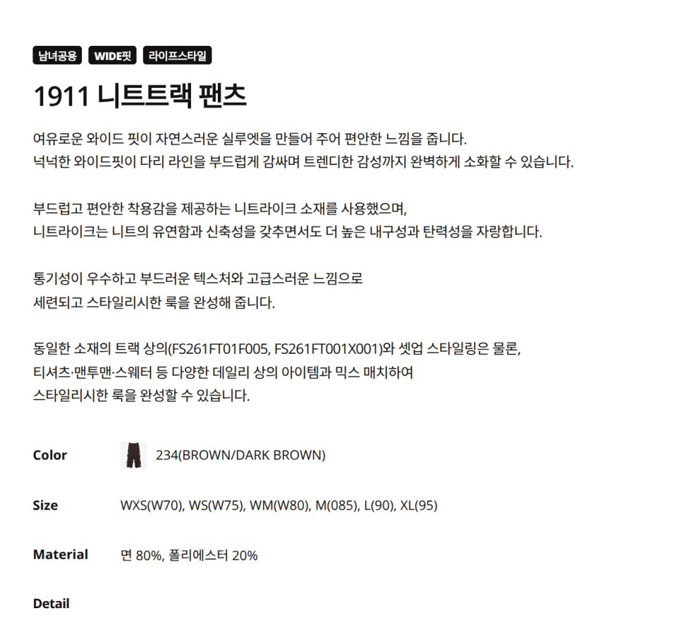 1911 니트트랙 팬츠(FS261FP01U001234)
