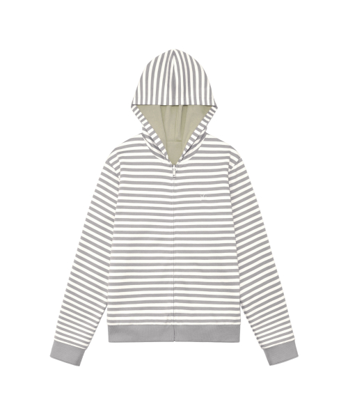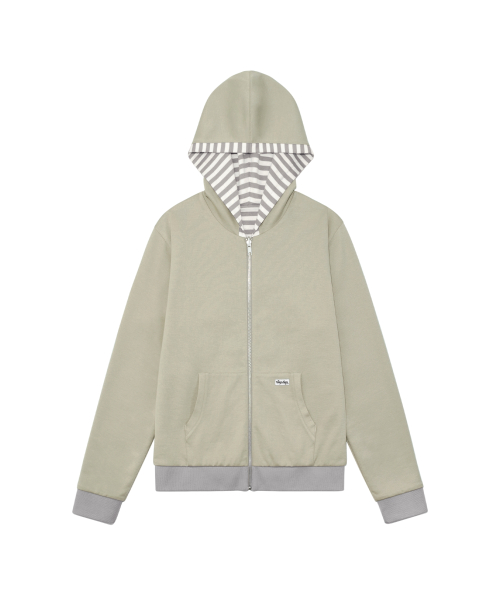 TCM reversible stripe hooded zip-up (beige)