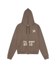 TCM logo applique hooded zip-up (brown)