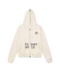 TCM logo applique hooded zip-up (oatmeal)