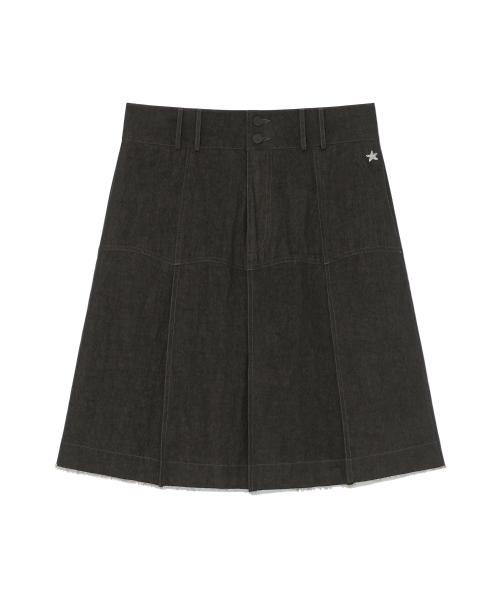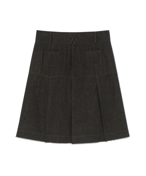 (w) TCM vintage denim pleated skirt (vintage brown)