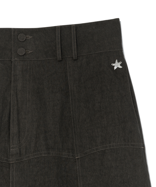 SHIRRING MIDI BANDING SKIRT, CHARCOAL