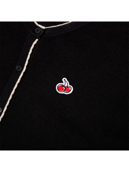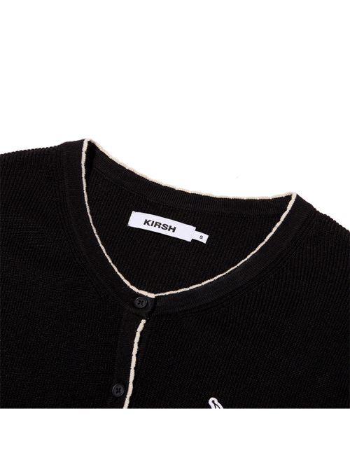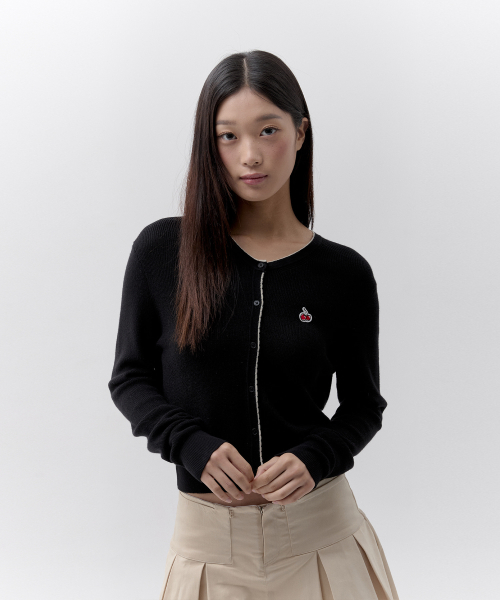 라인 포인트 브이넥 크롭 가디건 [블랙]