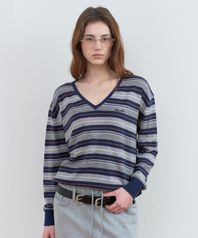 STRIPE V NECK KNIT NAVY