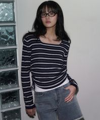 스퀘어넥 셔링 울 니트 탑 [NV/GR_ST]