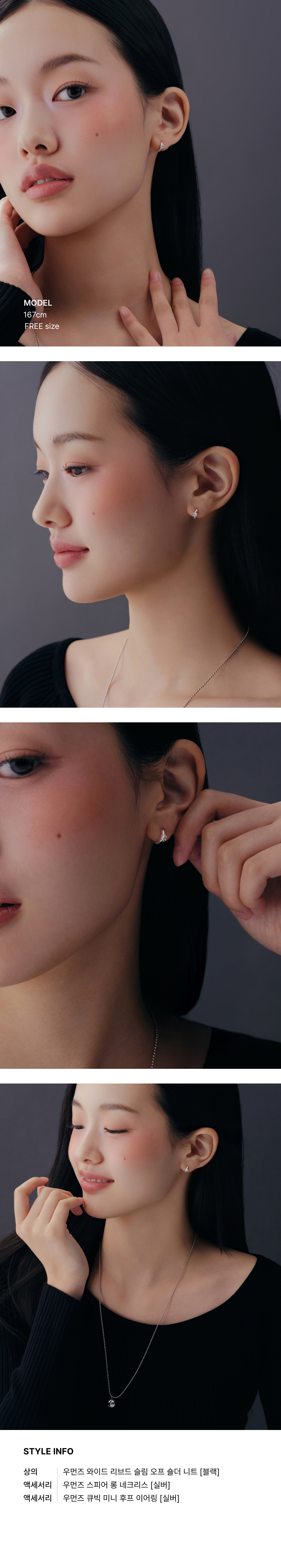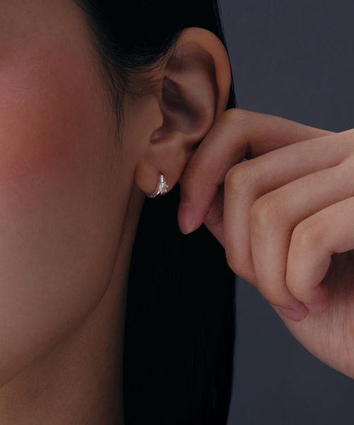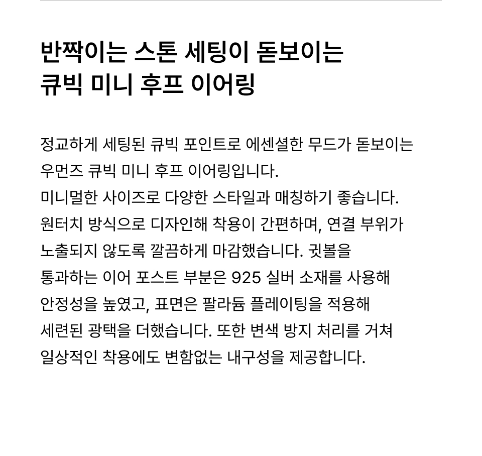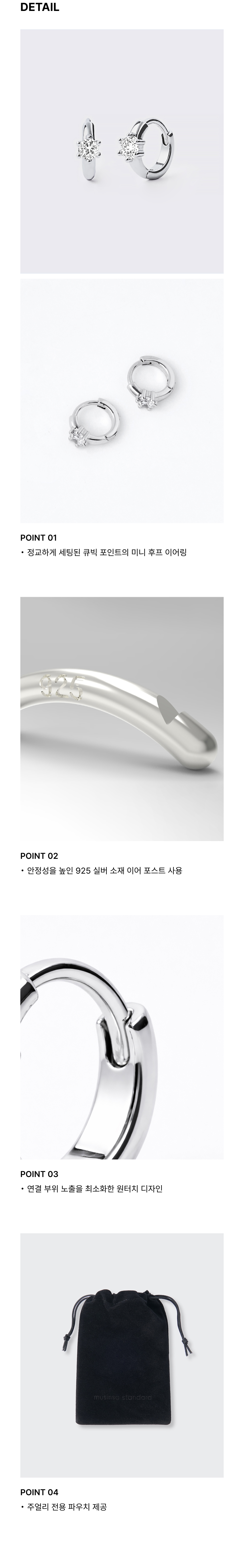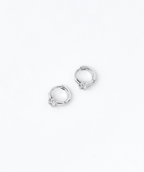 우먼즈 큐빅 미니 후프 이어링 [실버]