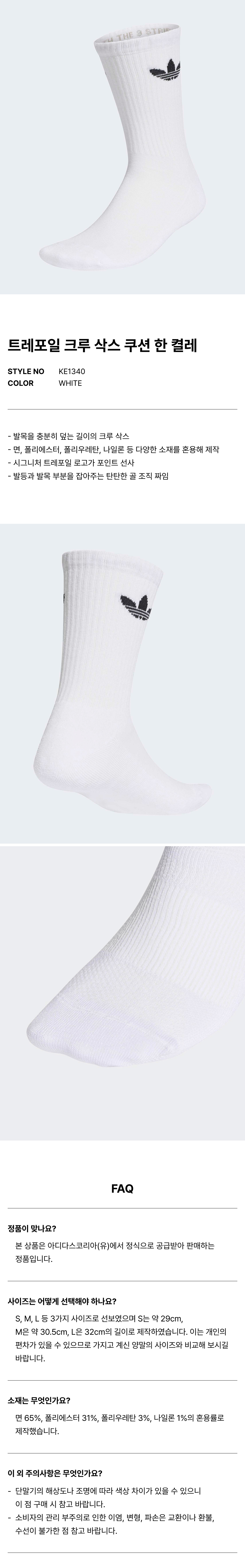 트레포일 크루 삭스 쿠션 한 켤레 - 화이트 / KE1340
