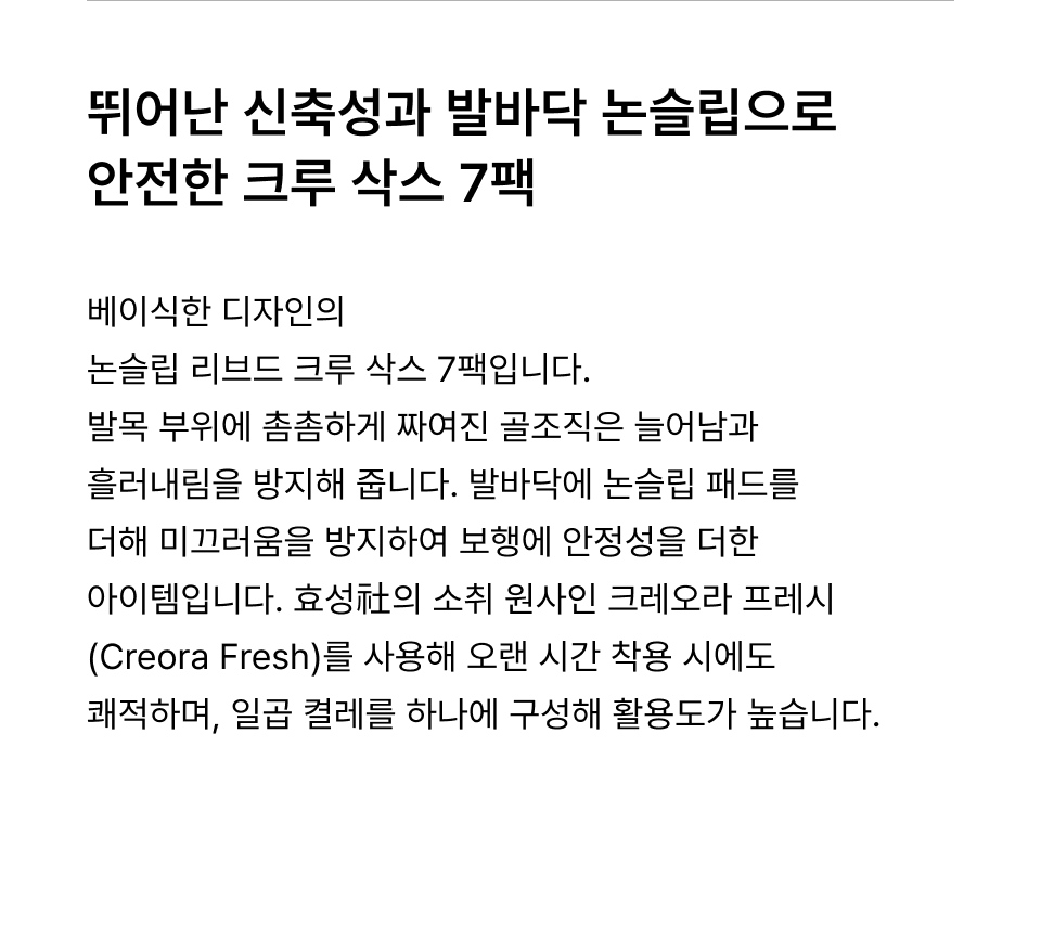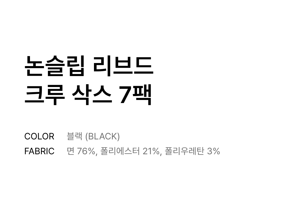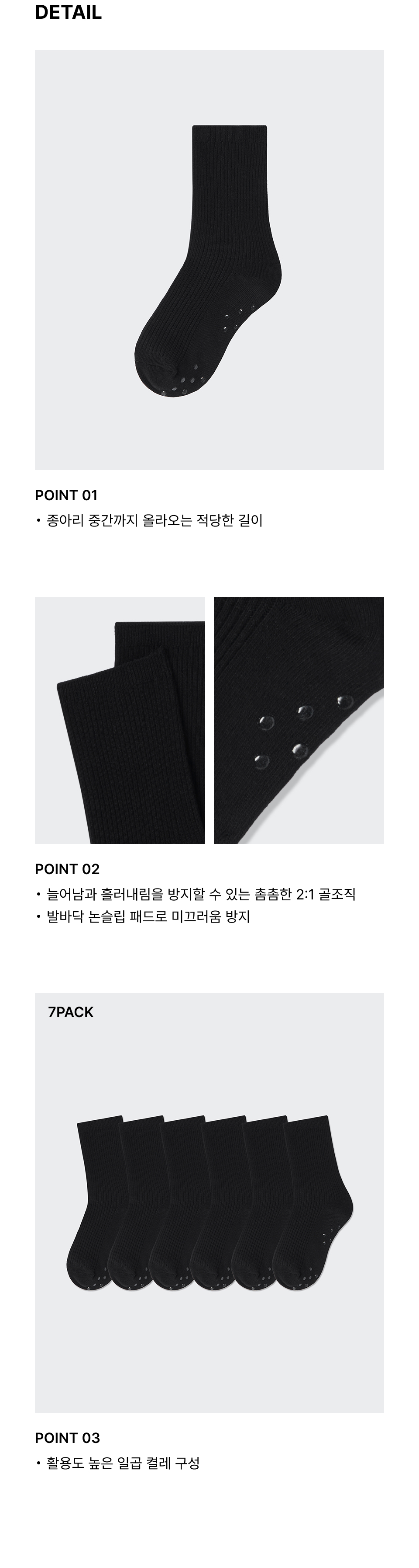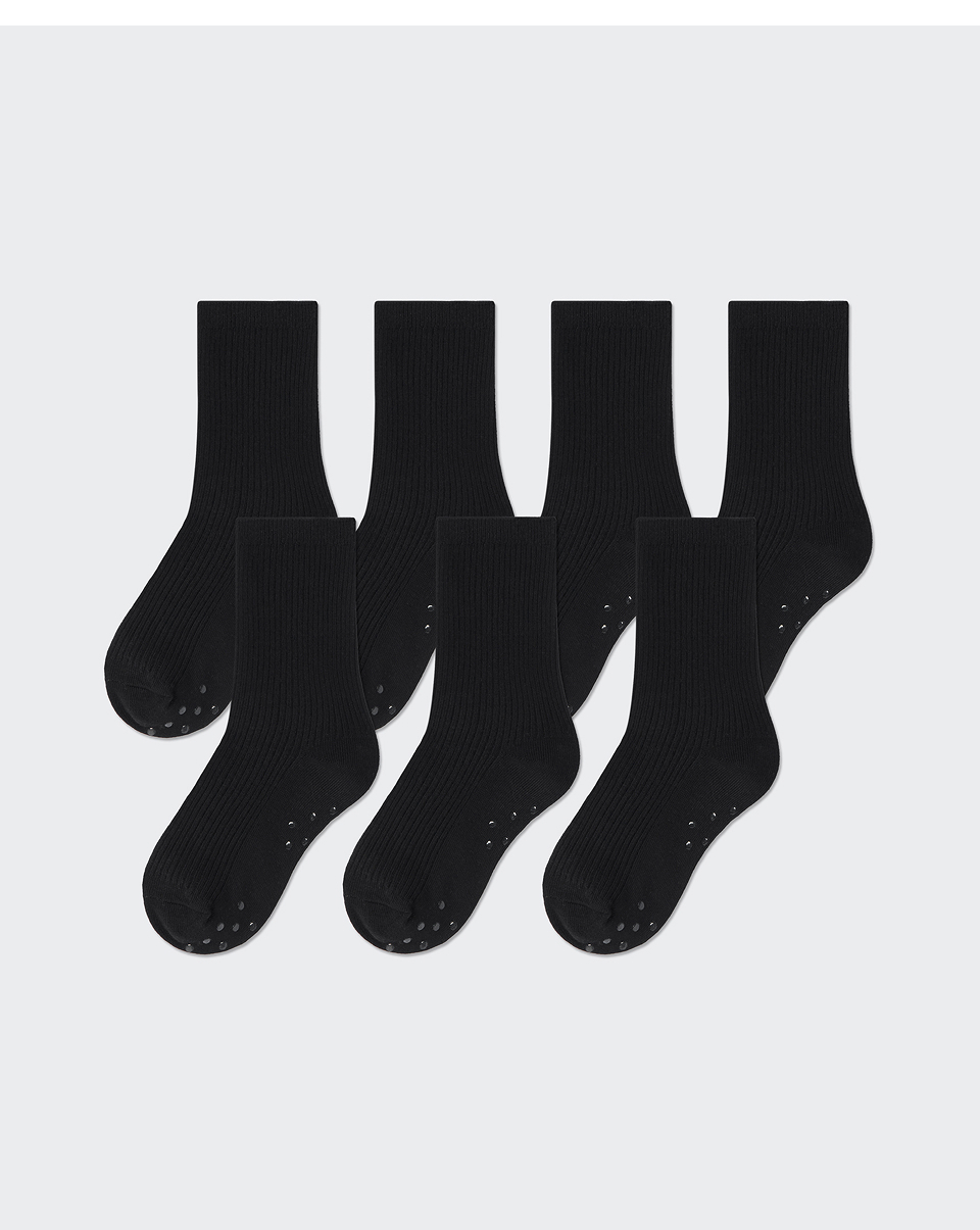 논슬립 리브드 크루 삭스 7팩 [블랙]