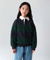 오버사이즈 스트라이프 럭비 스웨트셔츠 [네이비/딥 그린]