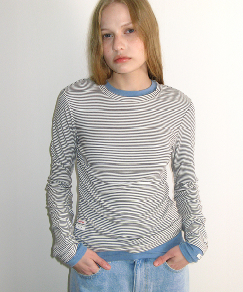 SOFT MINI LABEL LONG SLEEVE BLACK STRIPE