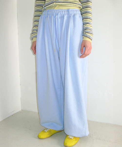 FLOWER TEXTURE WIDE SWEAT PANTS SOFT BLUE
