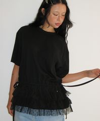 DOUBLE LAYERED SHIRRING SHORT T SHIRT BLACK