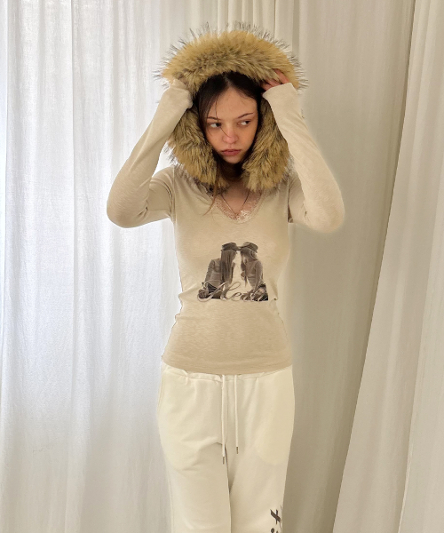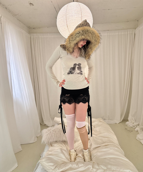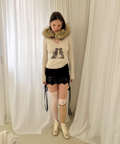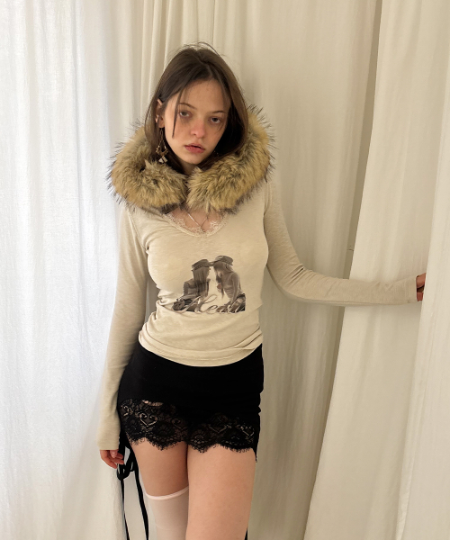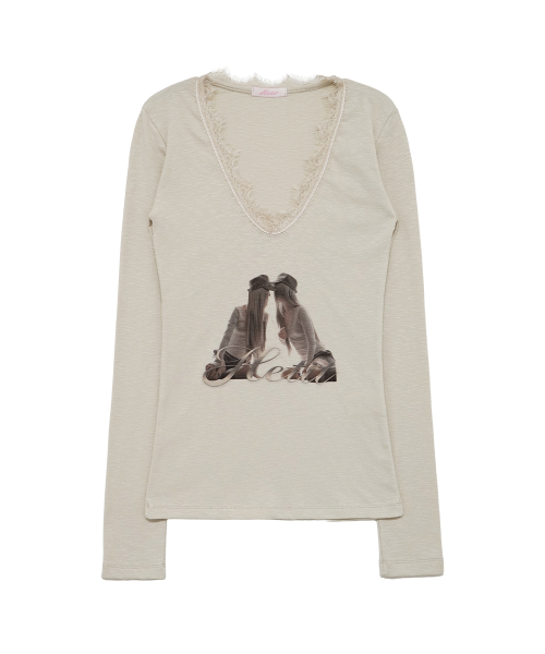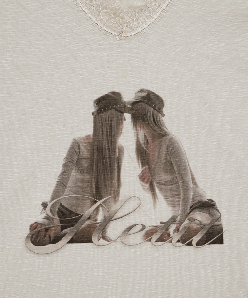 트윈 레이스 트림 티셔츠 (베이지)