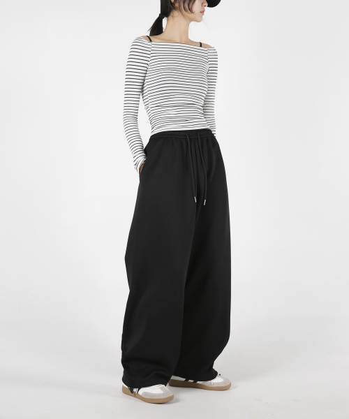 여자 사이드커브절개 와이드핏 스트링팬츠 3COLOR