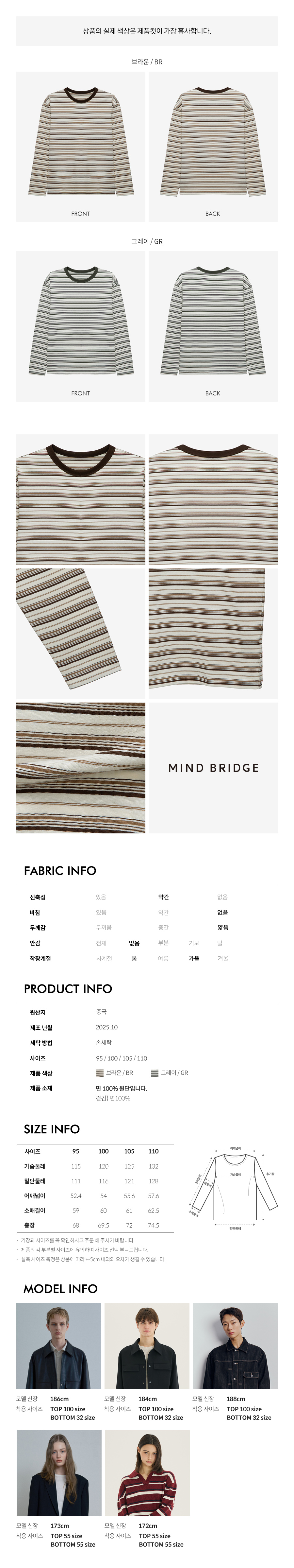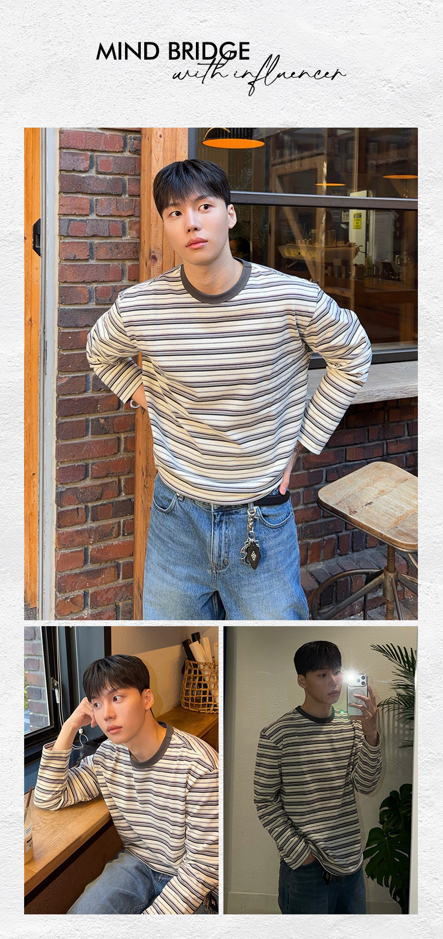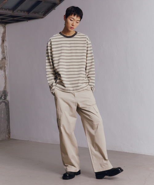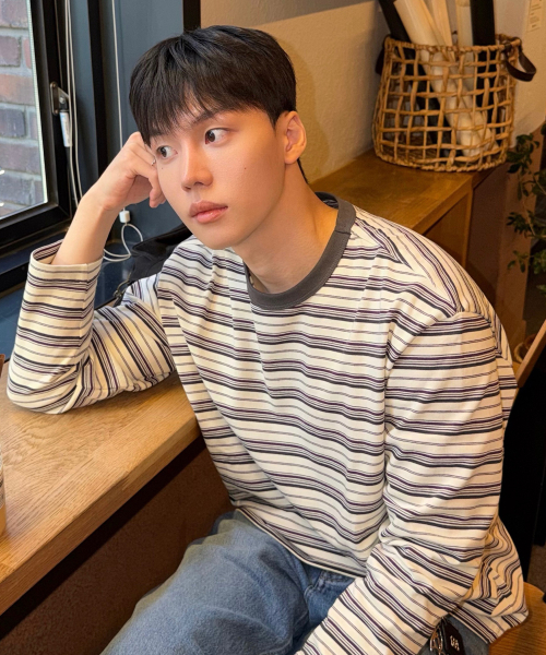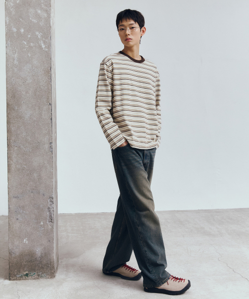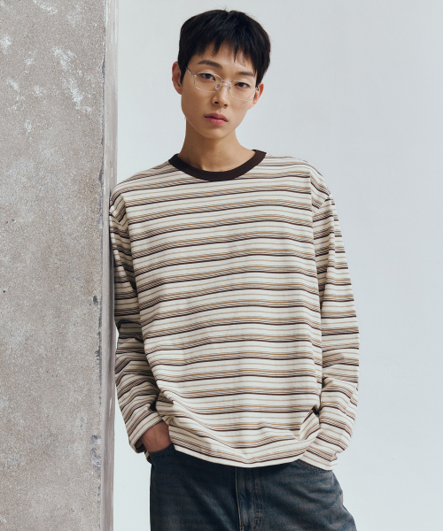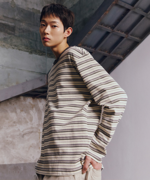 [ON]코튼 100% 멀티 스트라이프 오버핏 긴팔 티셔츠 - 2color