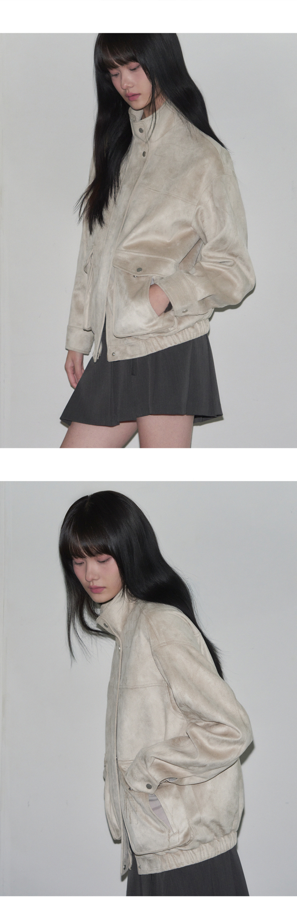 더블 포켓 스웨이드 블루종 자켓 [CREAM]